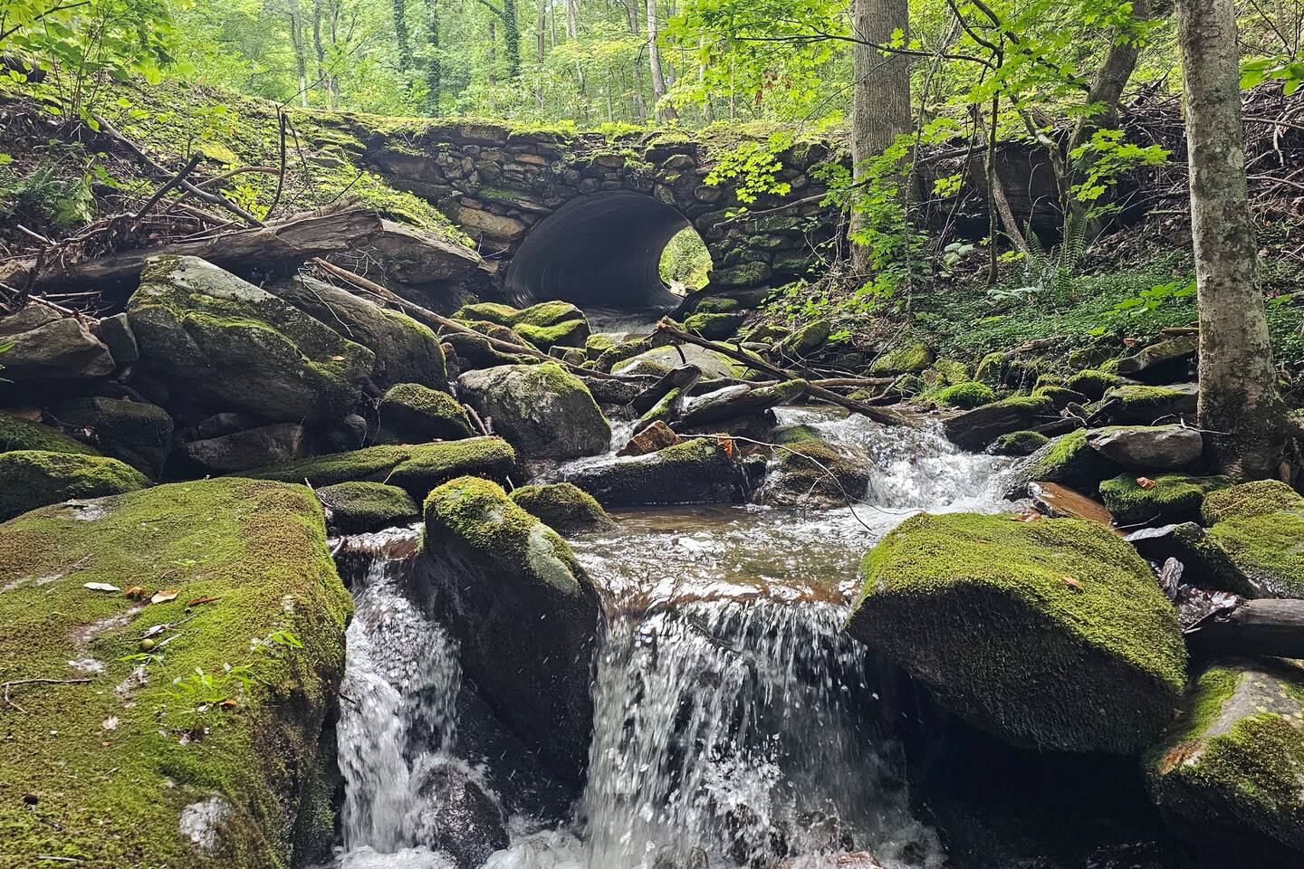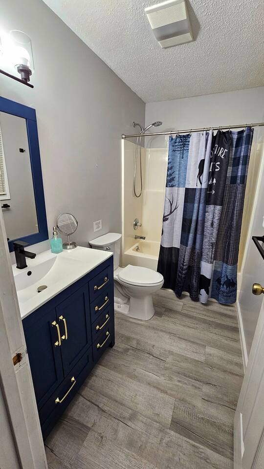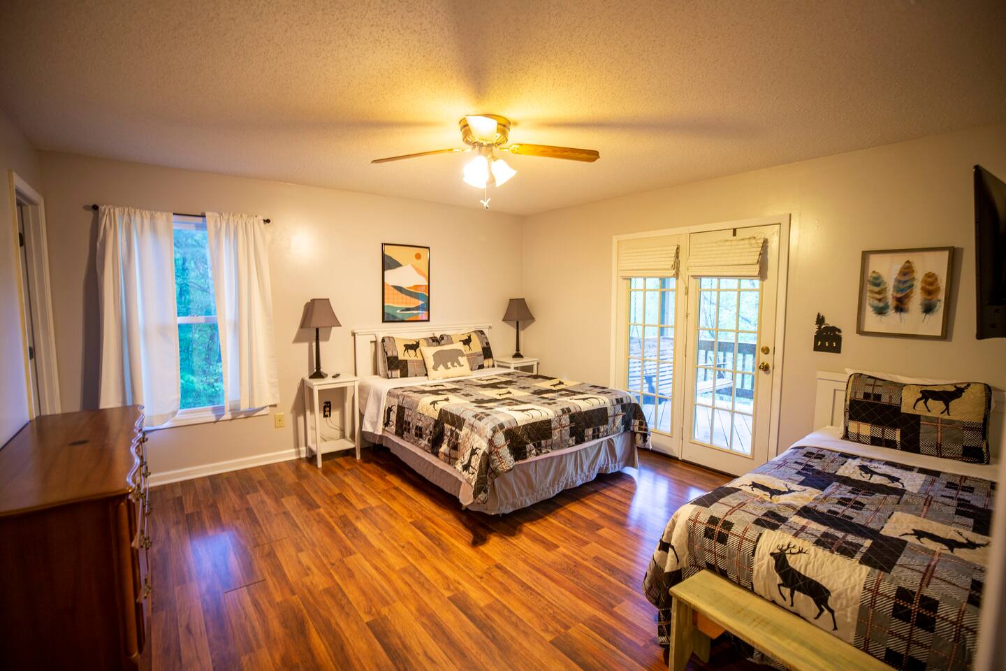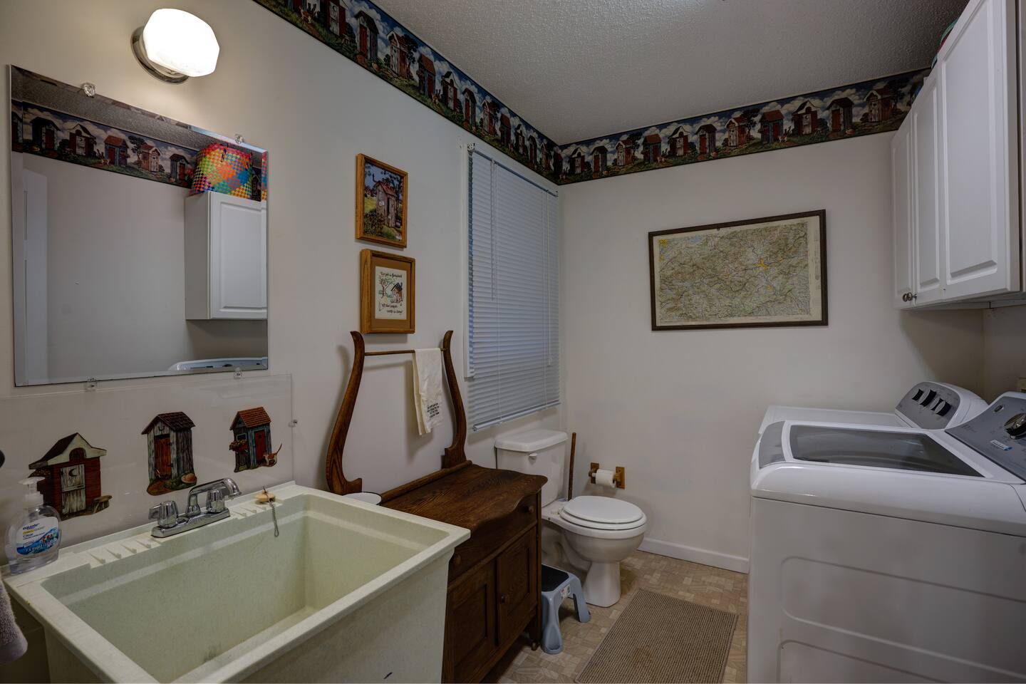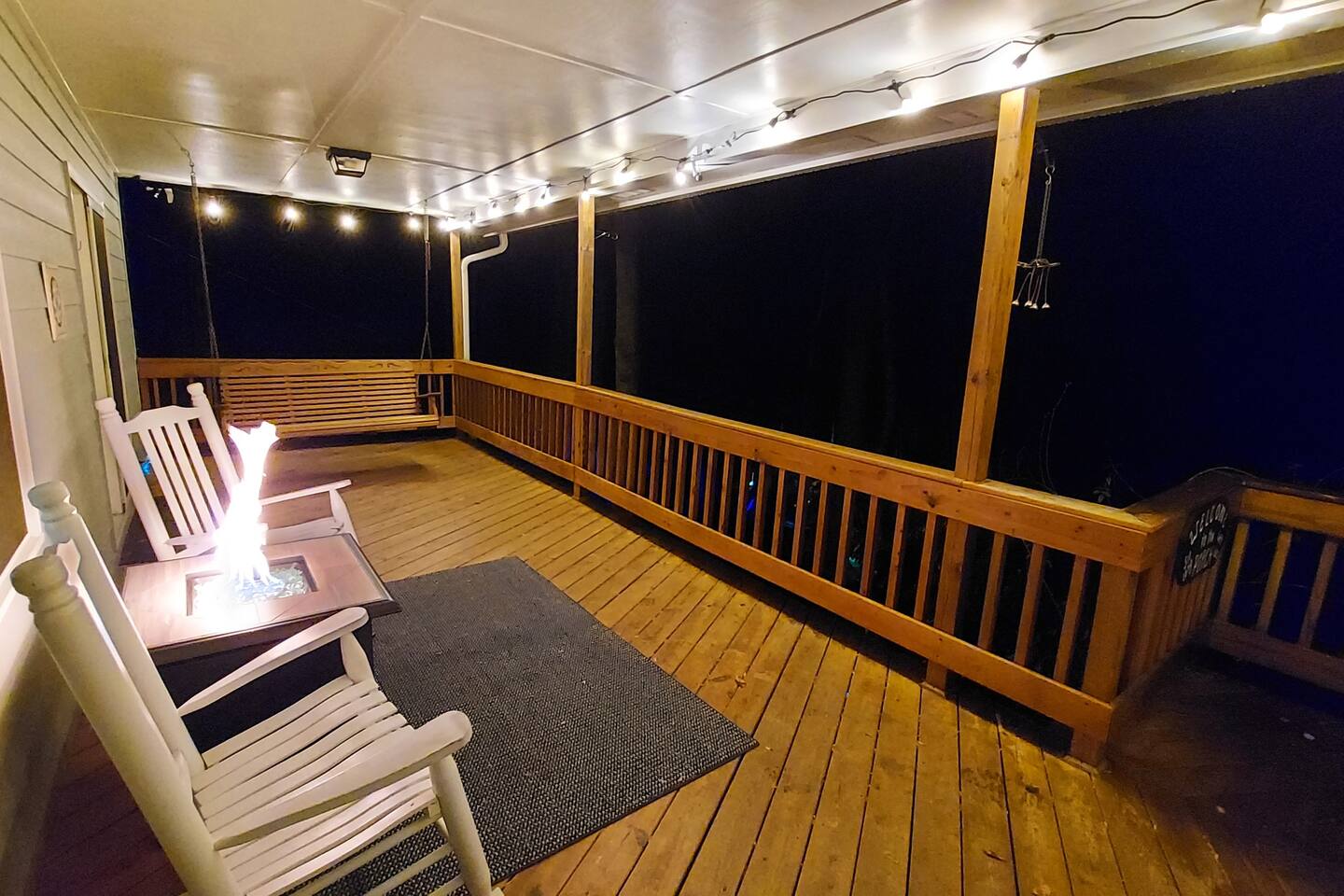The house is nestled into the trees on the side of a ridgeline at 3,000 feet elevation. There are neighboring houses, but with large lots and lots of trees, it feels secluded and private. The only traffic on the road are the occupants of the other homes. We own the lot on the other side of the road, which offers creek access. The main floor is the upper level. You'll ascend a wooden staircase to get there. You enter in the center of the house, which is the living area. There are two bedrooms on opposite sides of the floor with ensuite baths. Each bedroom also has its own door to the porch. One bedroom has a king-sized bed. The other has a queen and twin beds. In between the two bedrooms is a large living/dining area, a well-stocked kitchen, and a laundry room with a half bath make up the rest of the main floor. There is a desk for those that need to get some work done. The porch is large and has two swings, two rocking chairs, and a seating area. As you sit on the porch, you'll enjoy a beautiful, short-range mountain view to the West. The ridge you will see in front of you is part of Sheepback Mountain. If you're there at sunset and twilight, you'll see the sunset colors over the ridge. You'll hear the wind blowing through the leaves and the sound of water in the cascading creek down at the road. It's beautiful and peaceful, and our guests can't get enough of it. On the ground floor near the staircase, you'll find two grills. One is propane. The other charcoal. On the deck on the ground floor, you'll find the hot tub. While the view is not as grand as the upstairs porch, it's still a nice view, and it's a lovely setting with the trees in front of you. If you walk to the southside of the house, you'll find a fire pit with plenty of seating. You'll have trees on three sides of you, and the house on the other. You have privacy, but you can also see the short-range mountain views to the West. If you walk down our driveway and turn right and walk thirty yards, you'll see a wooden staircase descending to the creek. We own this lot and have built this staircase and deck for our guests' use. You'll find some seating to enjoy the sights and sounds of the beautiful, cascading creek. It's lovely!