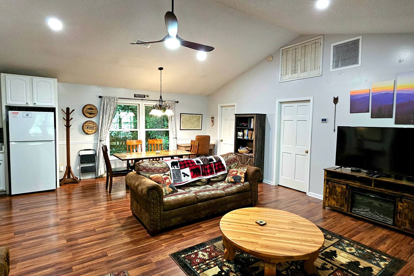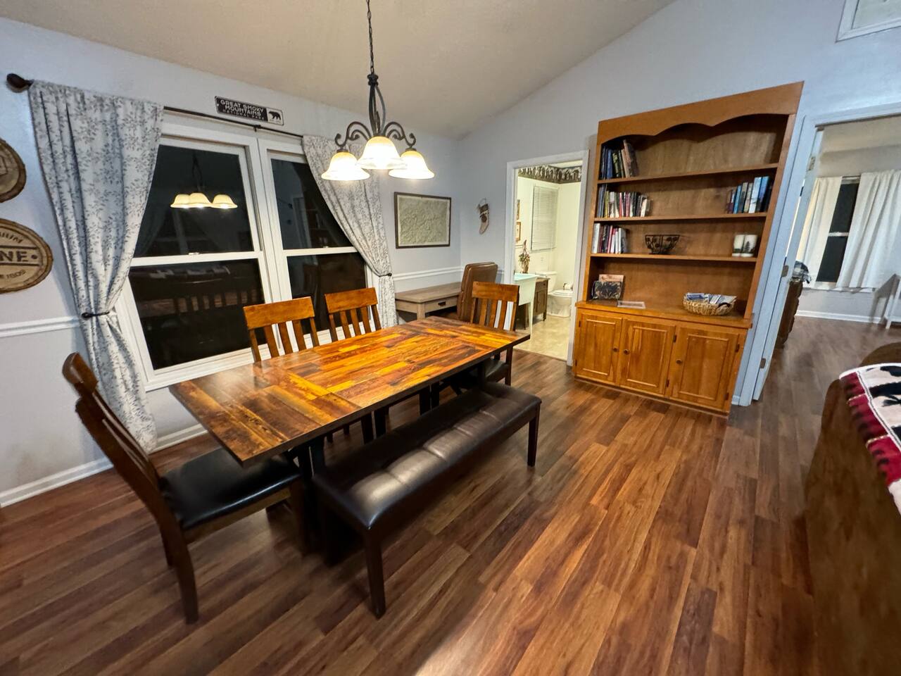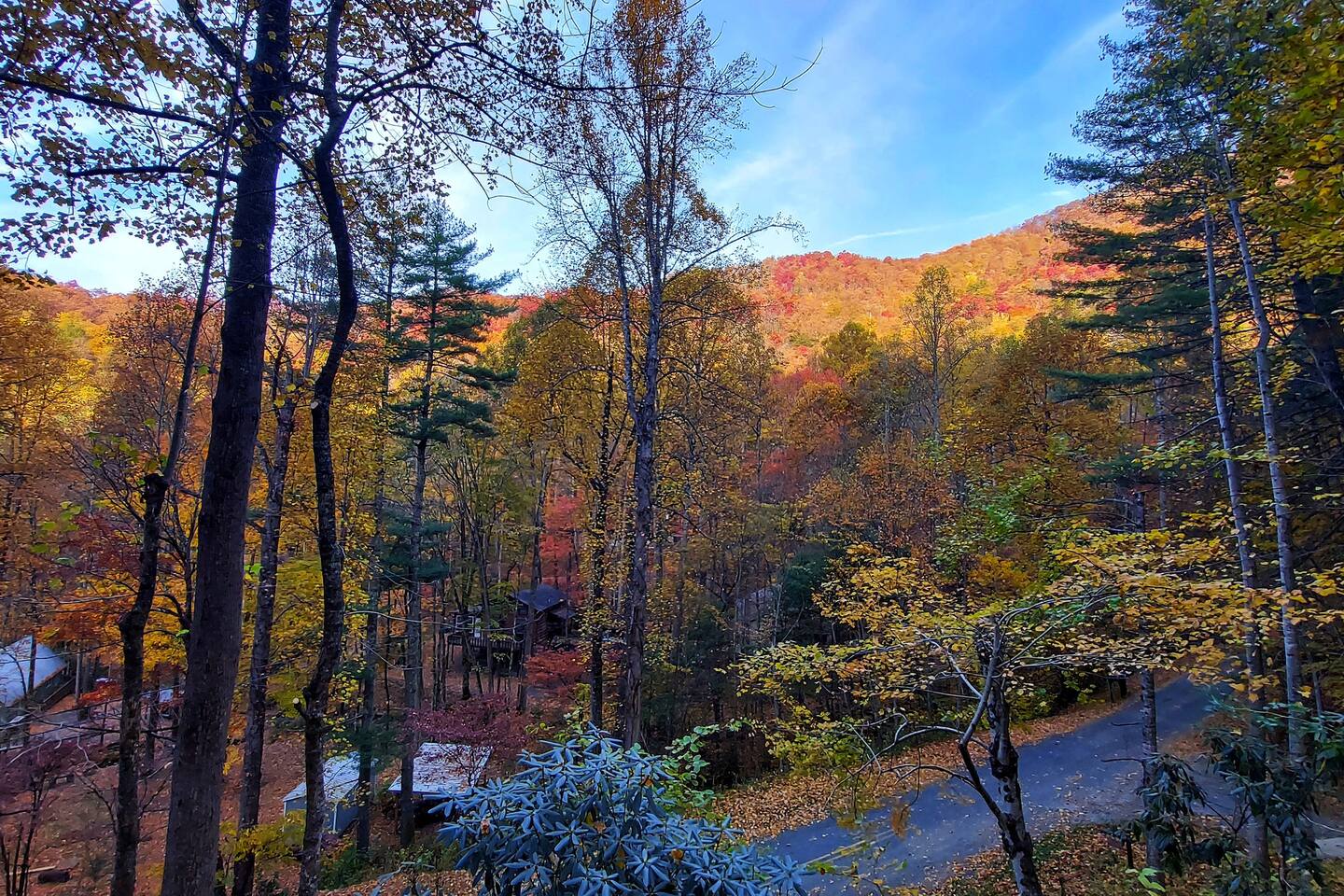 The home is located in the Dick's Creek Community. It's well-situated to explore the towns an sites of Western NC. It's just a short drive to Cherokee (Casino, waterfalls, National Park), Bryson City (Smoky Mountain Railroad, Deep Creek), Blue Ridge Parkway, and Sylva (shopping, night life, WCU). There are hiking, biking, and floating options nearby as well. Once you turn off the Smoky Mountain Highway (Highway 74), you'll enjoy the lovely approach that follows the creek through the forested canyon into the mountains. The community is made up of custom, single-family homes. It's very quiet, and there is very little traffic. You'll gain altitude as you approach the house. It's roughly 8 minutes from the highway and sits at 3,000 feet of elevation.