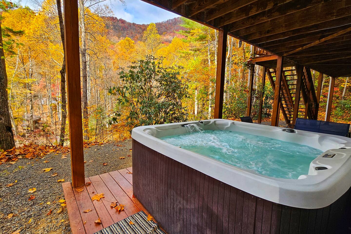 Enjoy mountain views, creek sounds, and a hot tub escape